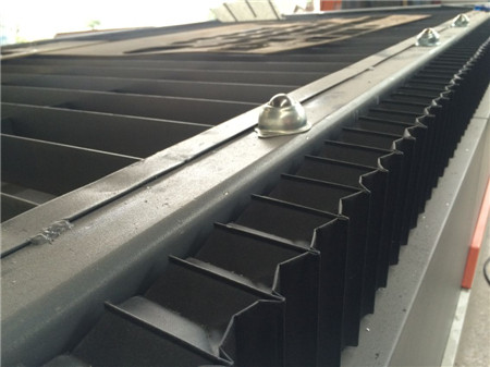該型臺式數控切割機割臺部分采用龍門式數控切割機使用的扁鐵型割臺,其結構是用一定寬度80mm和厚度5mm的扁鐵(一般用鐵板剪切成v型結構),相互平行排列組成。間距大小可根據常用下料板材厚度及零件大小來確定,一般為100-150mm。扁鐵在使用過程中是易損件,為便于更換,采用插入式結構。